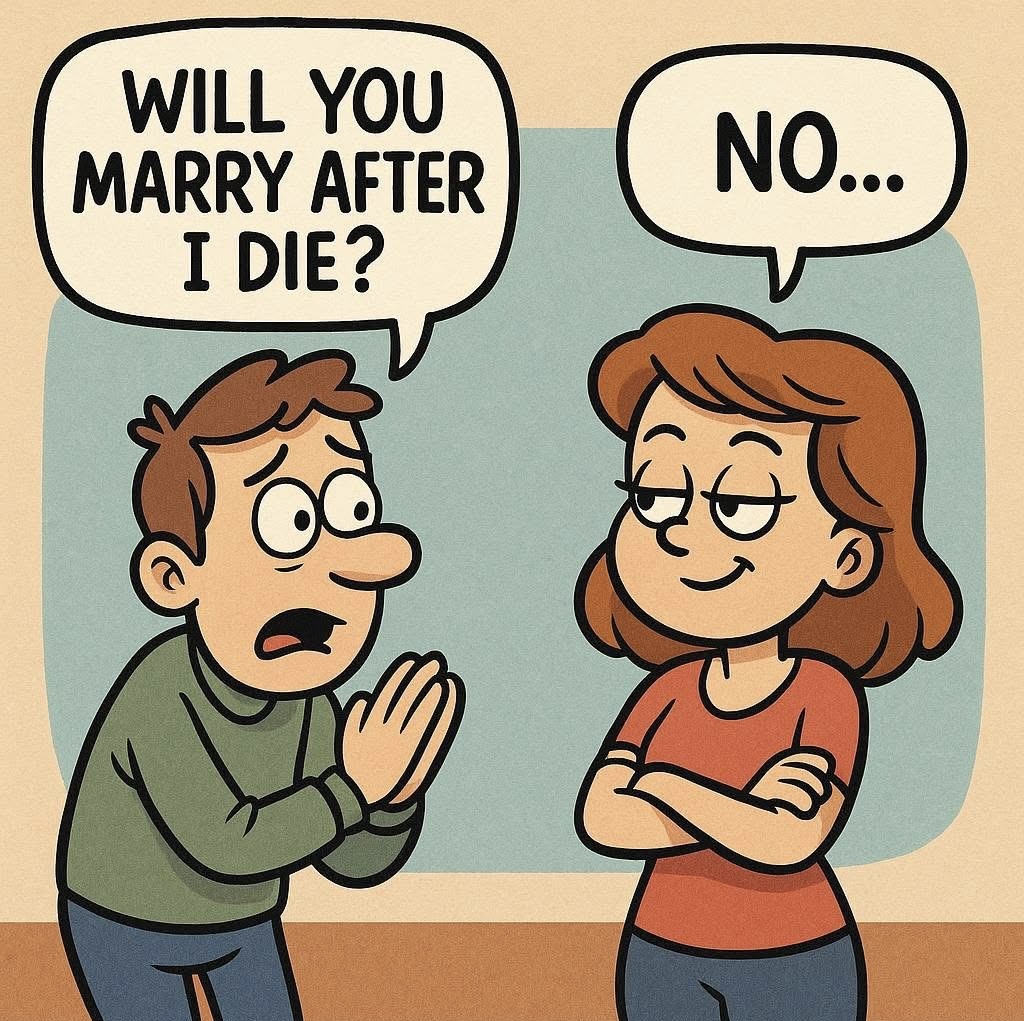 A husband asks his wife: “Will you marry after I die?”