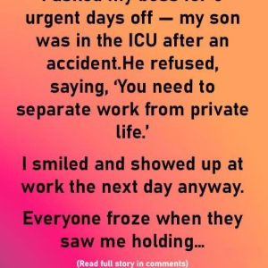 I asked for five urgent days off because my son was in the ICU in critical condition. My boss refused. He said, “You need to separate work from private life.”… Read more