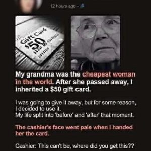 When my grandmother passed away, I thought the only thing she left me was a modest $50 gift card—hardly the inheritance one dreams of, but perfectly fitting for a woman… Read more