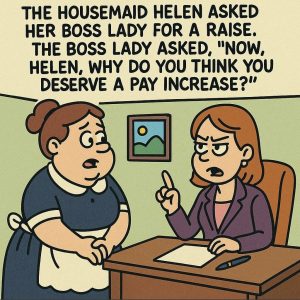 The maid asked her boss’s wife for a raise, and the wife was upset. The wife asked, “Now, Helen, why do you think you deserve a pay increase?” Helen: “There… Read more