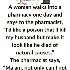 A woman walks into a pharmacy one day and says to the pharmacist, “I’d like a poison that’ll kill my husband but make it look like he died of natural… Read more