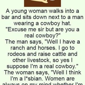 A young woman walks into a bar and sits down next to a man wearing a cowboy hat. “Excuse me sir but are you a real cowboy?” The man says,… Read more