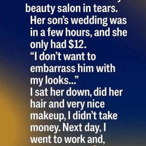 A woman came to my beauty salon in tears. Her son’s wedding was in some hours, and she only had $12. “I don’t want to embarrass him with my looks,”… Read more