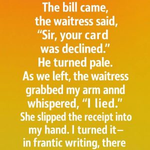 While I was on a date, the bill came, and the waitress said, “Sir, your card was declined.” My date’s face turned pale with embarrassment, and I could feel the… Read more