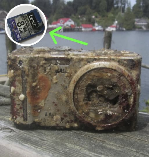 The camera Paul Burgoyne recovered off the west coast of Vancouver Island, Photo Credit: Isabelle M Cote/X