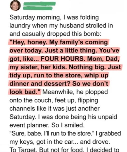 It was a peaceful Saturday morning, and I was enjoying some downtime when he walked in with his usual smug grin and announced, “My family’s coming over in four hours. Just a small thing.”