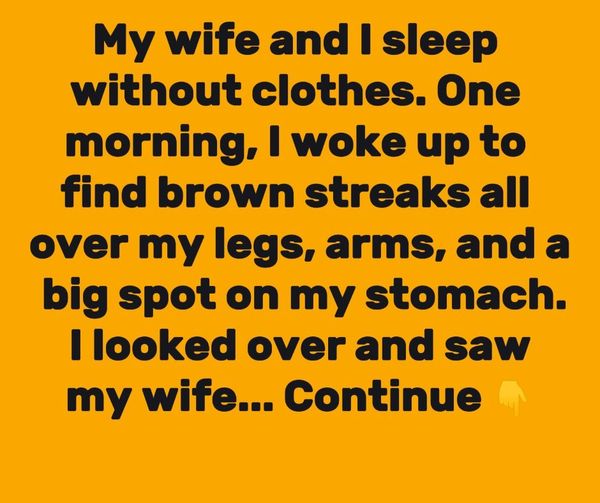 My wife and I sleep naked. One morning, I woke up to find brown streaks all over my legs, arms, and a big spot on my stomach. I asked my wife, “What happened?” and saw that her back and arms were covered too.