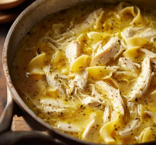Add the 2 cups of egg noodles to the boiling broth and cook for 6–8 minutes, or until tender.