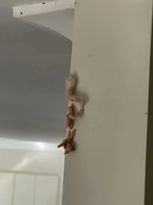 One morning, before my coffee, I noticed something odd in my kitchen—a dry, pinkish blob stuck where the wall met the cabinet. It didn’t move or smell, but clearly didn’t belong. Curious and a little concerned, I posted a photo online.