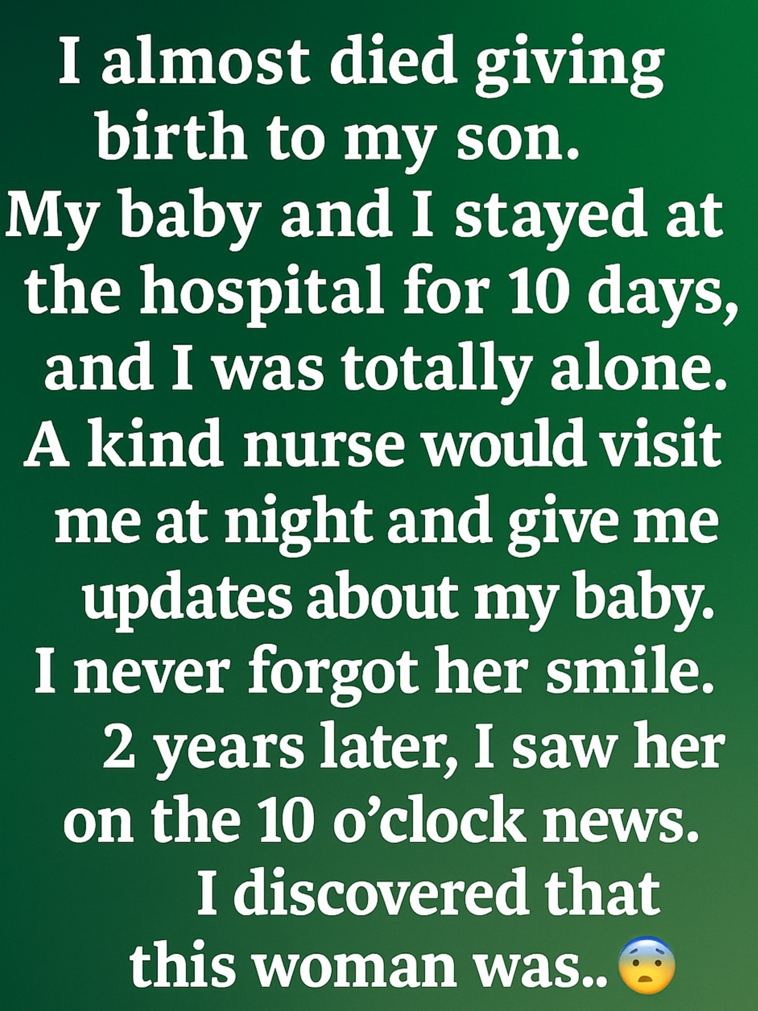 The reporter introduced her as a community volunteer who organized nighttime support for families with newborns in intensive care. A woman who spent her days working grueling hospital shifts and her nights comforting strangers going through the darkest moments of their lives.