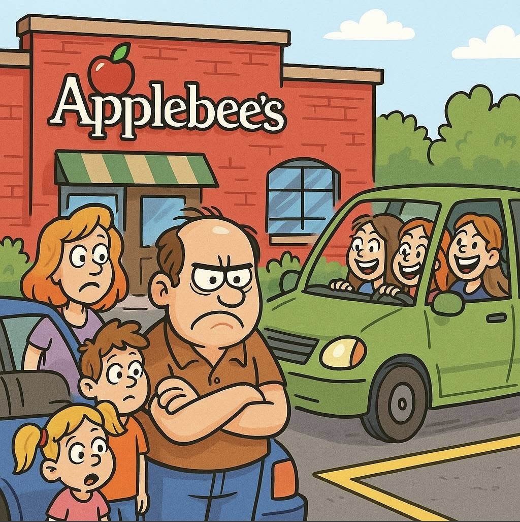 Took the family out to eat at Applebee’s. The parking lot was packed, but I spotted a guy heading to his car, so I waited about 10 minutes for him to pull out.