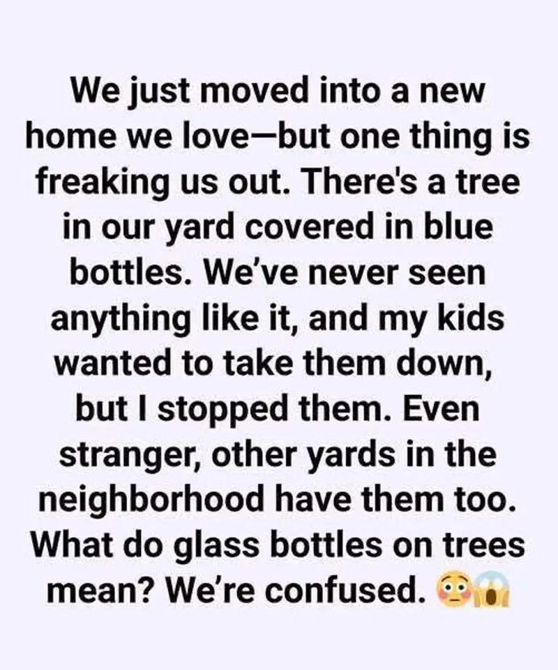 She smiled and explained, “They’re called bottle trees. They’ve been around for generations. Some say they’re meant to trap bad luck, others see them as a symbol of hope. For many of us, it’s a way of remembering loved ones.”