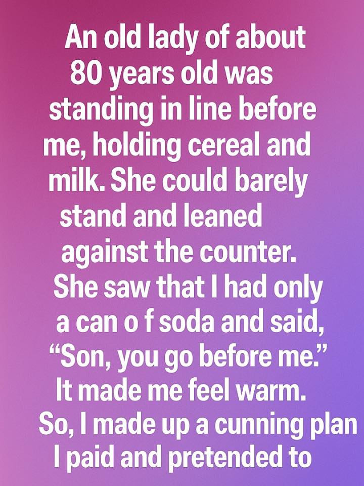 I paid for my soda, then pretended to fumble with my wallet, patting my pockets as if I’d forgotten something important. I stepped aside but didn’t leave. From the corner of my eye, I watched her. Her hands shook slightly as she repositioned the cereal box. The smile she wore wasn’t forced—it was the kind that comes from a lifetime of choosing kindness without thinking twice.