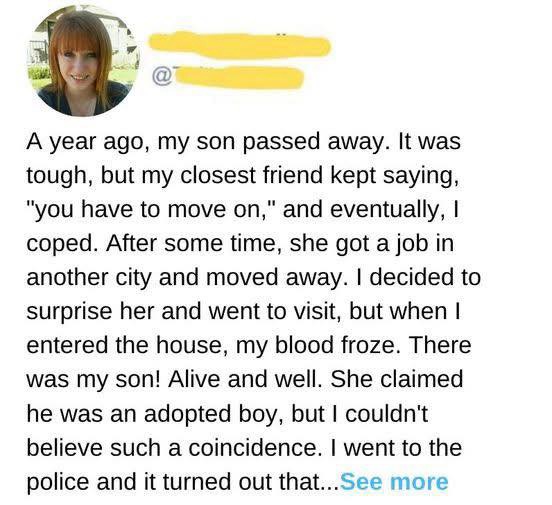 I had mourned my son for a year. The pain had been unbearable at times, but with the support of friends and family, I had managed to find a semblance of peace. My friend, Sarah, had been a constant presence during those dark days, urging me to find closure and move forward with my life. Little did I know, her encouragement had a sinister twist.